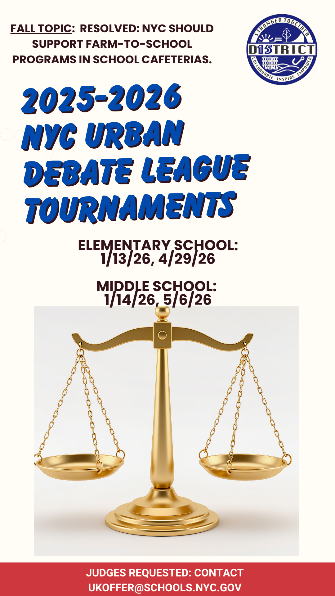 District 15 will hold auditions for grades 6-12 on Friday September 26th from 3:30-6:30pm. Grades 3-5 will be held on Thursday September 25th from 3:30-6:30pm.